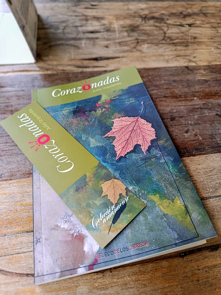 Así que el componente estético era no solo fundamental sino un reto para nuestra editorial. Un desafío que nuestro diseñador gráfico Kike Ubieto ha convertido en un libro-objeto repleto de alma. Es un latido entre las páginas, un constante torrente de vida, un pulso que nace con las hojas secas conscientes de que en el ciclo interminable todo reverdece y renace en la primavera. Ese mismo ciclo vital circula, perenne, en los poemas de Julio Izquierdo.