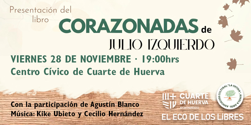 Preparábamos el volumen manuscrito de sus poemas inéditos que componen estas Corazonadas y, poco antes de comenzar la tertulia literaria que cada martes y jueves tiene lugar en El Sombrero Loco de Cuarte de Huerva (Zaragoza), Julio me despachó esta frase mientras apuraba su café con leche y garabateaba el proyecto de portada que sugería para este libro. Puede parecer una sentencia liviana pero en realidad, resume el eje donde se engrana toda la producción artística de Julio Izquierdo: la sinceridad.